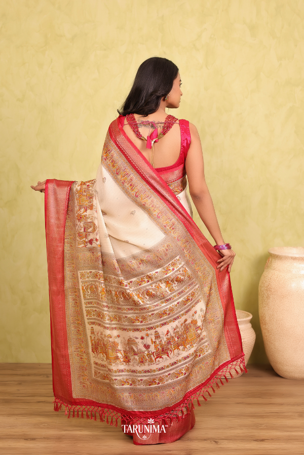 Disclaimer: Saree color may vary slightly due to lighting or screen settings. Handwork sarees may have minor irregularities. The blouse shown on the model is different; actual unstitched blouse is in product photos.
