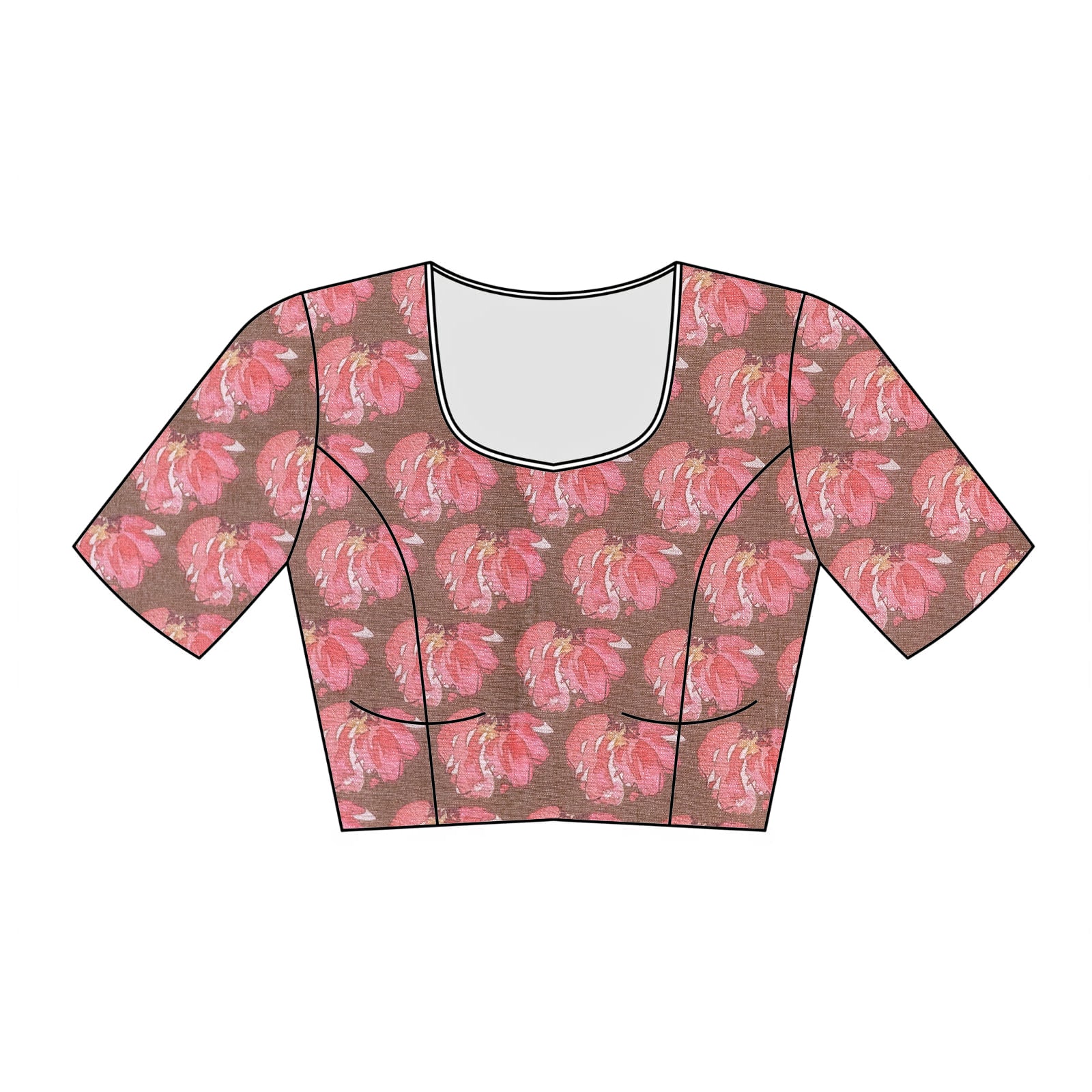 A pastel beige brown crepe chiffon saree enhanced with floral motifs, bringing sophistication and lightness to every drape.